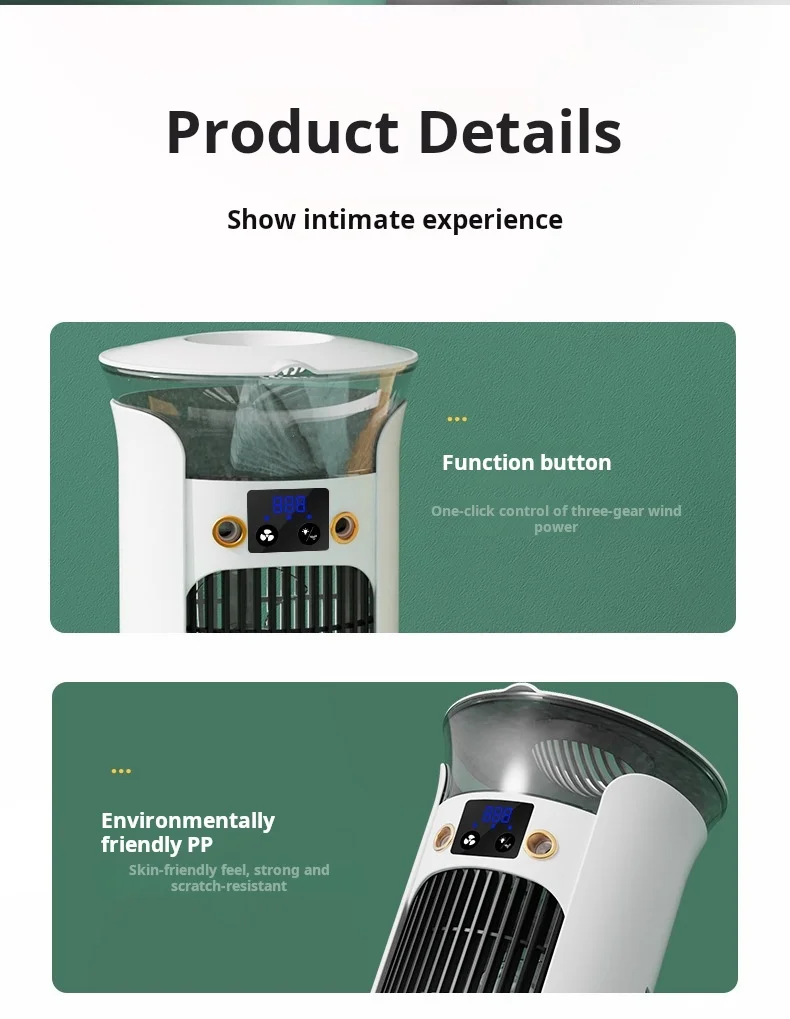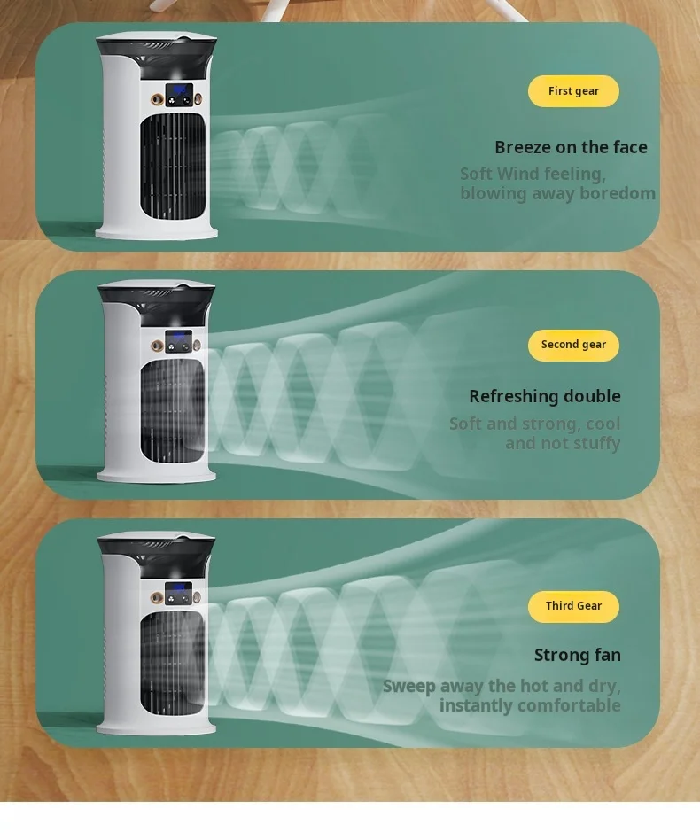 This multi-function air conditioning fan provides personal cooling, enhancing your comfort in hot environments.